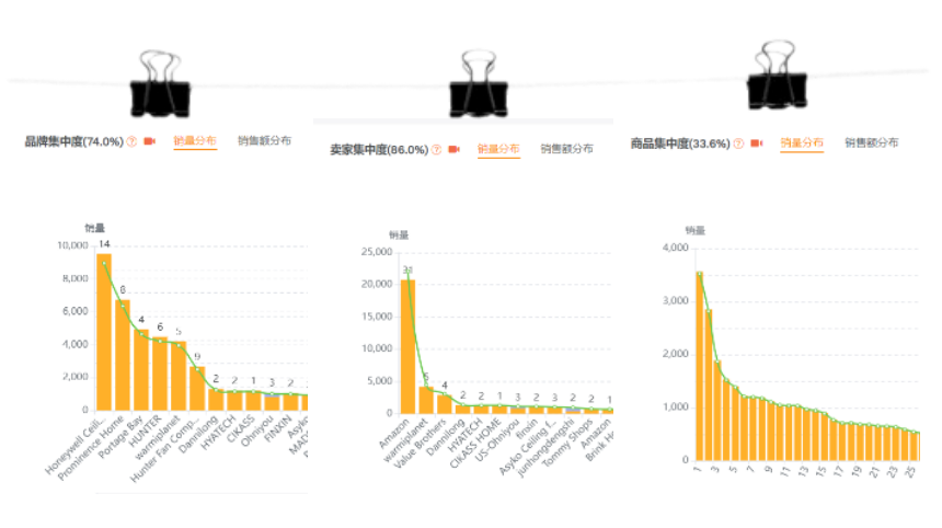 截至2023年3月28日,亚马逊美国站风扇灯BSR排名前100的榜单中,品牌集中度和卖家集中度分别达到了74%和86%,头部品牌和头部卖家对风扇灯类目的垄断程度较高,竞争压力较大。但是该品类在商品集中度上仅为33.6%,说明头部商品的销量占比并没有很高,卖家对产品的需求范围比较广,不会过度集中某一款产品,对卖家来说需求市场依然强劲,注重品牌化打造的同时加强产品的研发,满足市场多样化需求依然大有可图。