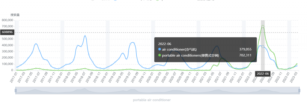 随着能源危机和连年极冷极热气候的来临,让节能、多功能、高参数的季节性家电成为未来家电市场的必然需求趋势。关注高效力低能耗的季节性家电品类,对家电卖家来说至关重要。凭借局部降温效果快、即插即用、方便移动等特点,移动空调近两年迎来出海热潮,尤其是在人工费用较高的美国等地区,加上独特的“搬家文化”和这两年兴起的露营热,市场需求空前高涨。