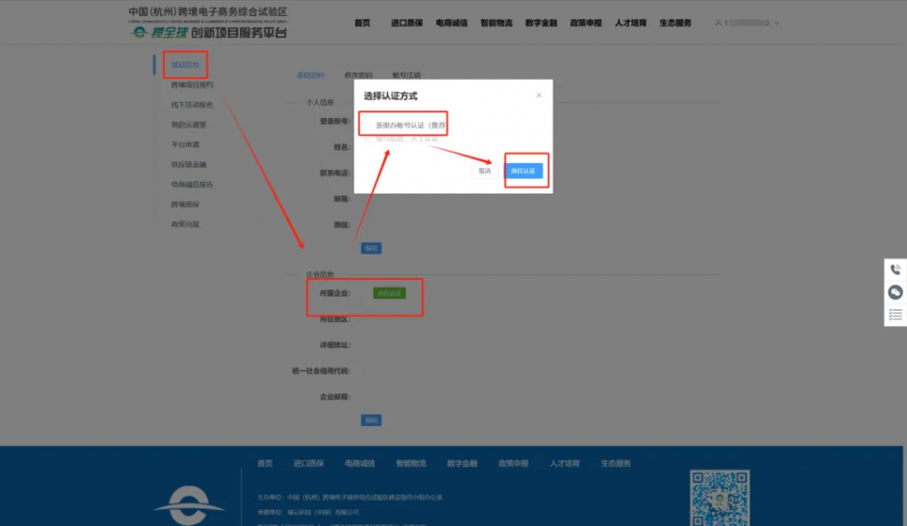 非企业账户,须在个人中心企业信息中点击认证,调整至浙里办进行企业身份认证,同时企业需在杭州线上综合服务平台进行注册。